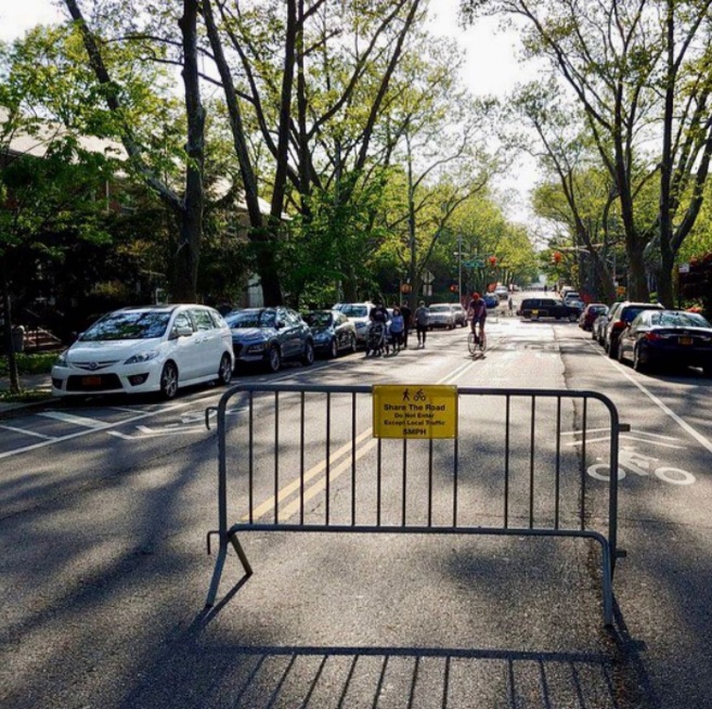 39th Avenue in Sunnyside, is an Open Street closed to vehicles daily from 8 a.m. to 8 p.m. except for local traffic and deliveries. Drivers are not permitted to go more than 5 mph along the stretch (Photo: Instagram @Sunnysideopenstreets)